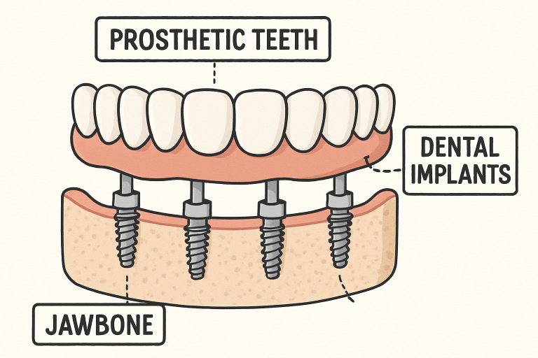 All-on-4 dental implants represent a breakthrough in tooth replacement technology for individuals missing all or most of their teeth in the upper or lower jaws. Instead of replacing each missing tooth with a single implant, the All-on-4 method uses just four biocompatible titanium implants strategically placed in the jawbone to support a full prosthetic arch. These implants serve as sturdy anchors for a custom-made set of teeth, designed to mimic the appearance and texture of natural teeth closely.